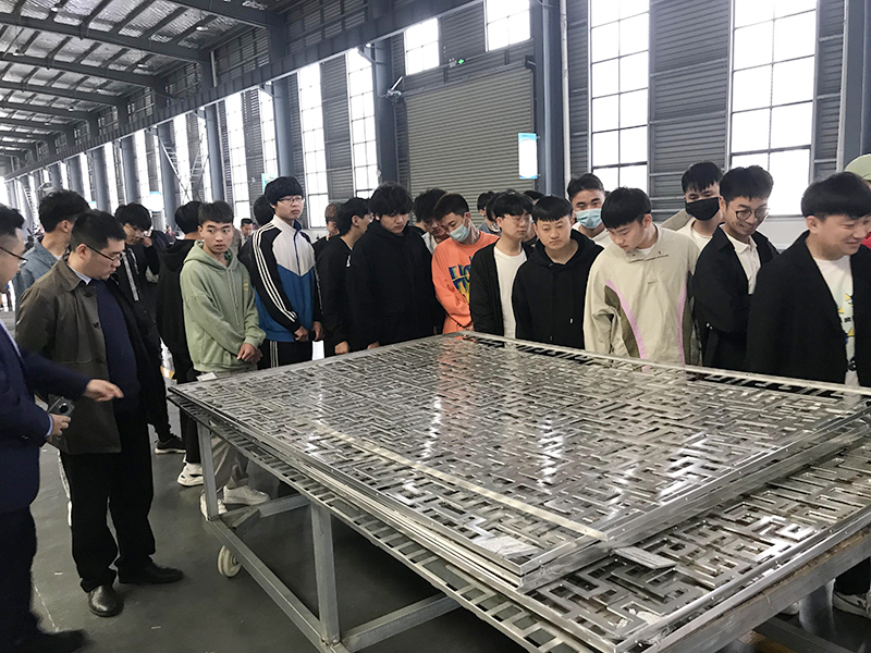 期間,在公司總經理及其他負責人的陪同下,楊向東局長、馬國鋒局長、六安技術學院領導汪玉奎主任及學生一行參觀了安徽鑫翊公司幕墻鋁單板生產車間以及產品榮譽展示廳等部門,全面了解了鑫翊公司的辦公環境及企業文化。